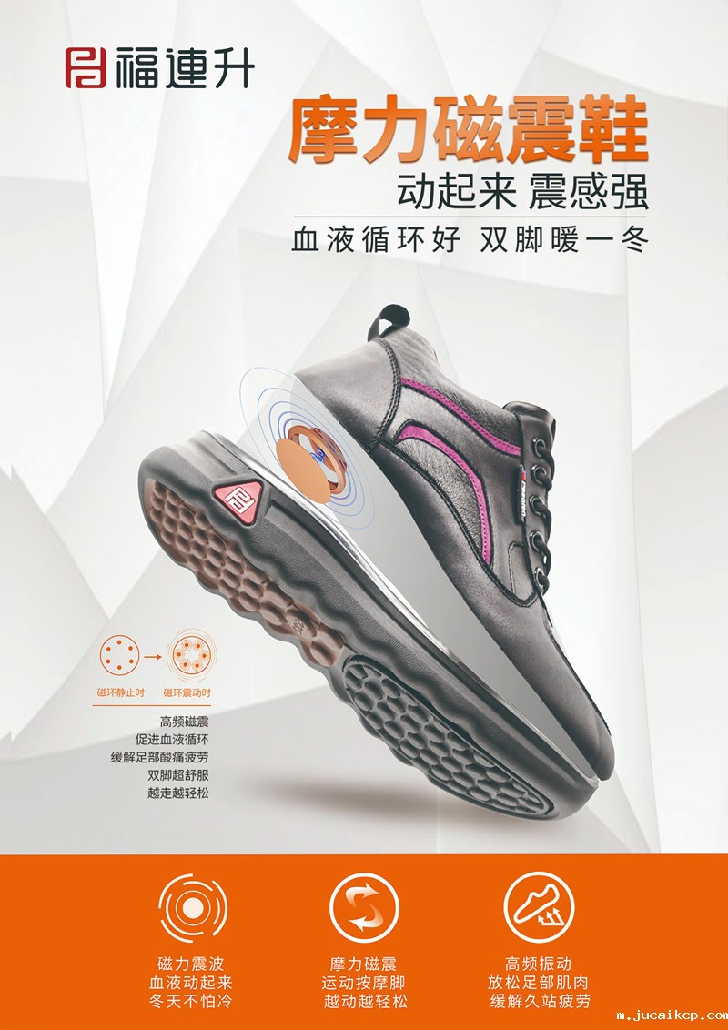 jucaikcp冬季新品打破鞋品科技新思路,专业研发特别推出黑科技摩力磁震鞋、保温暖冬羊毛鞋、安全生活止滑鞋、无惧污渍防水鞋四大板块冬款新鞋品。